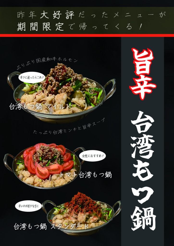冬季のみ★台湾もつ鍋が期間限定で再出店します!